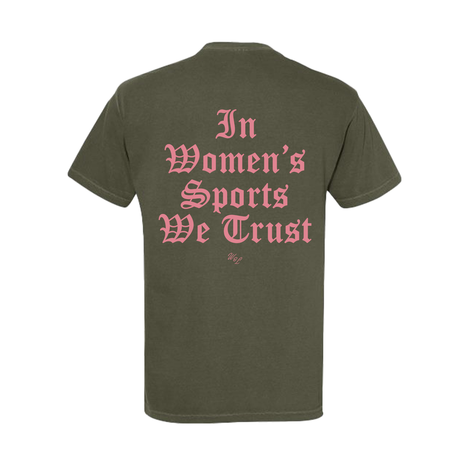 Throw on our In Women’s Sports We Trust Tee and show where your loyalty lies.